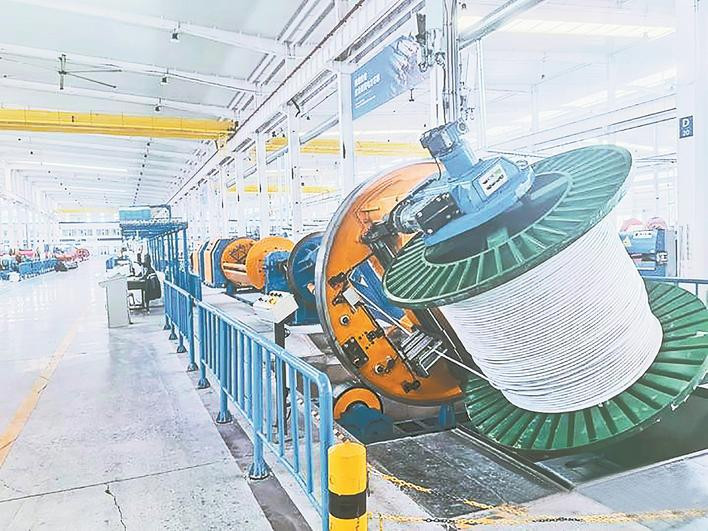 常丰线缆有限公司聚丙烯绝缘电力电缆车间生产线。记者吴新光摄